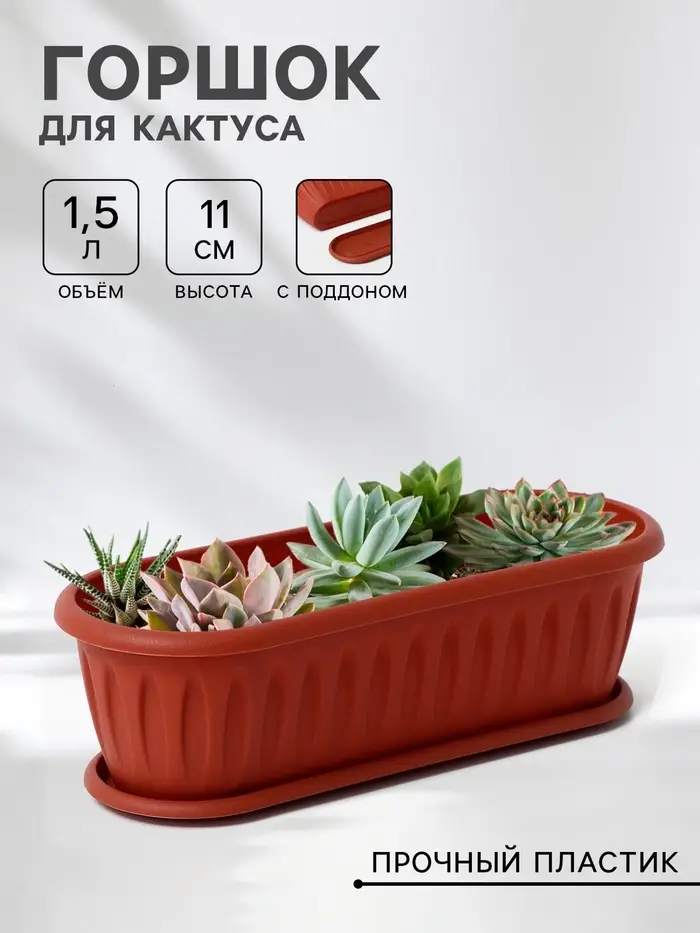 Горшок для кактуса с поддоном «Фелиция», 1.5 л, терракотовый