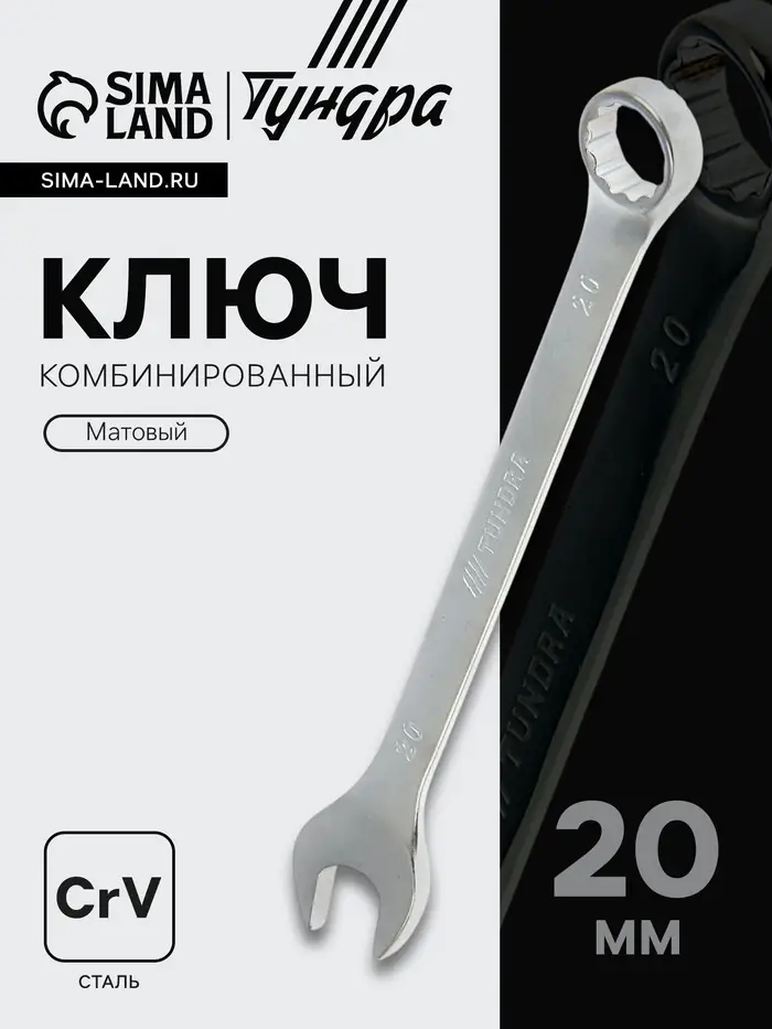 Ключ комбинированный ТУНДРА, CrV, матовый, 20 мм