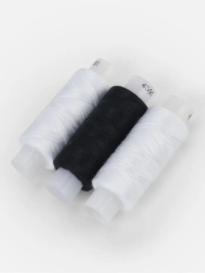Часто возникает необходимость отремонтировать или подшить одежду. В такой ситуации вас выручит набор «Домино» с чёрными и белыми нитками.