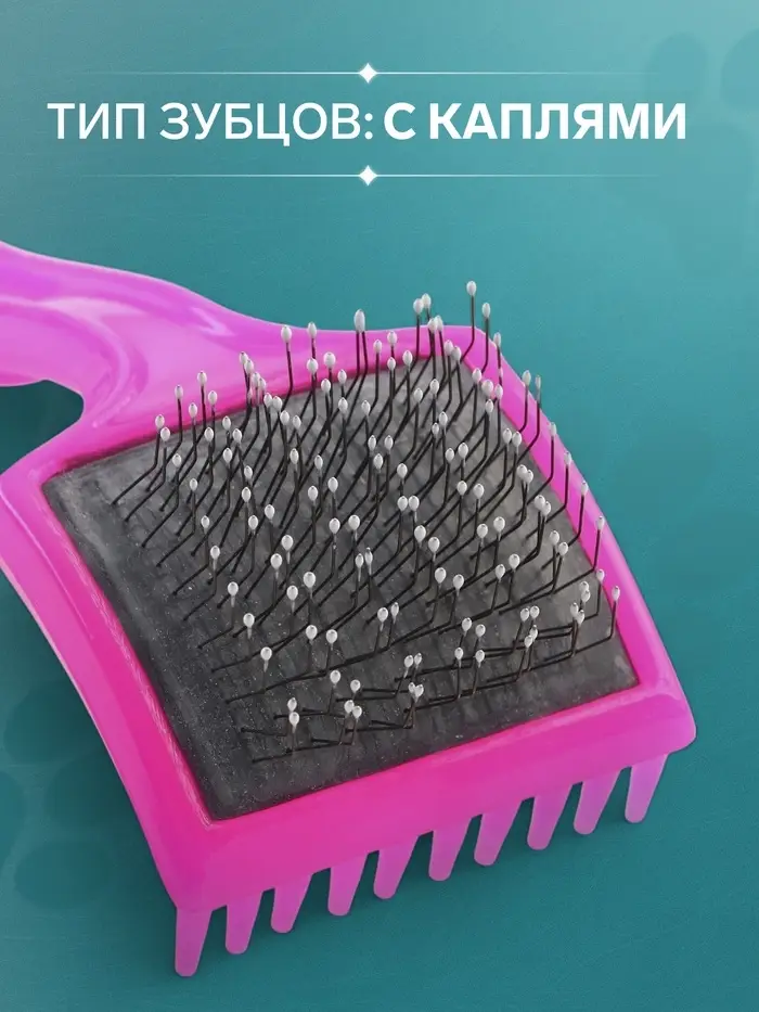 Щётка - пуходёрка малая, основание 44×44 мм, мягкая с каплями, розовая