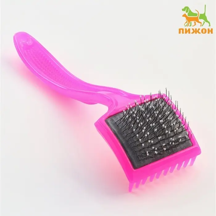 Пуходерка выполненная из нержавеющей стали, предназначена для ухода за шерстью кошек и собак. Пуходерка имеет частую металлическую щетину, что помогает удалять старую шерсть и стимулировать рост новой. Пуходерка служит для полного разъединения всех шерстинок. Она вычесывает отмершие волосы, вытягивая шерсть на полную длину. Удобная прорезиненная ручка не позволит выскользнуть пуходерке из рук даже во влажных условиях использования.