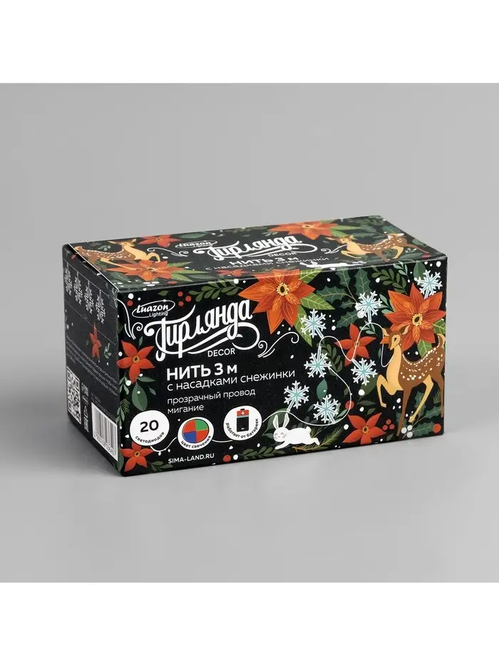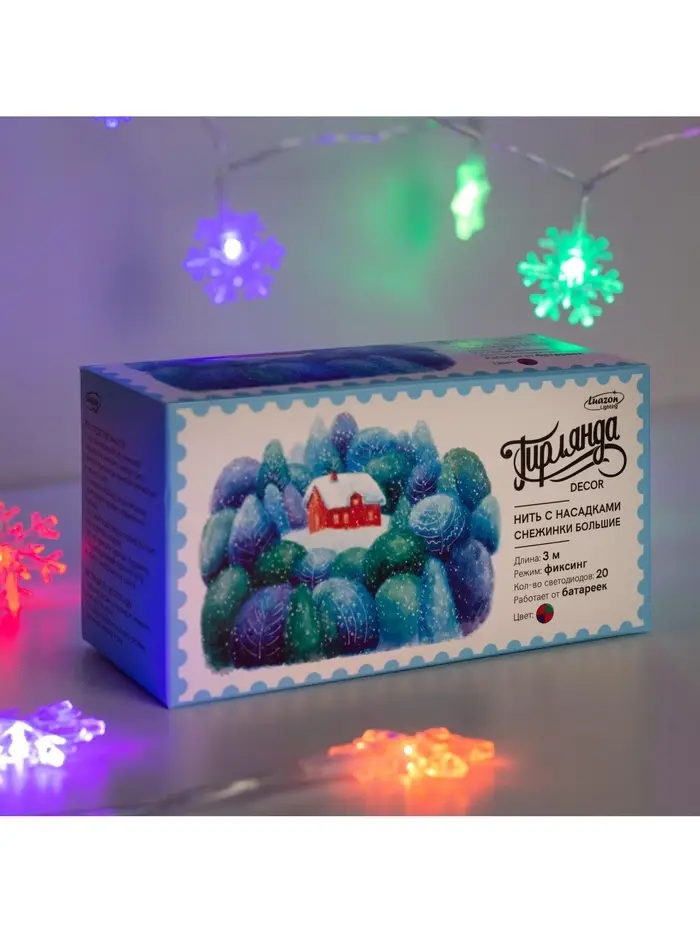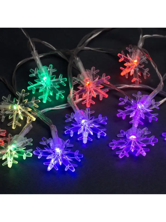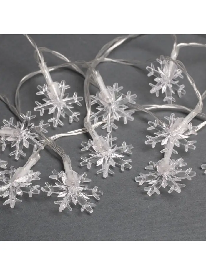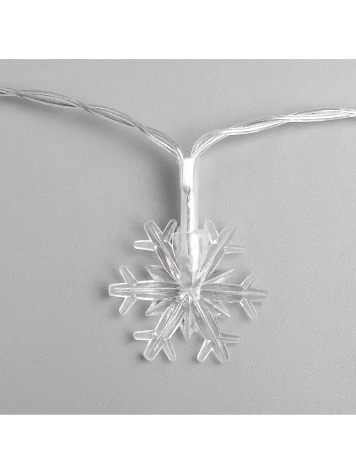 Гирлянда «Нить» 3 м с насадками «Снежинки большие», IP20, прозрачная нить, 20 LED, от батареек АА×3, свечение мульти
