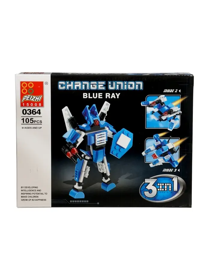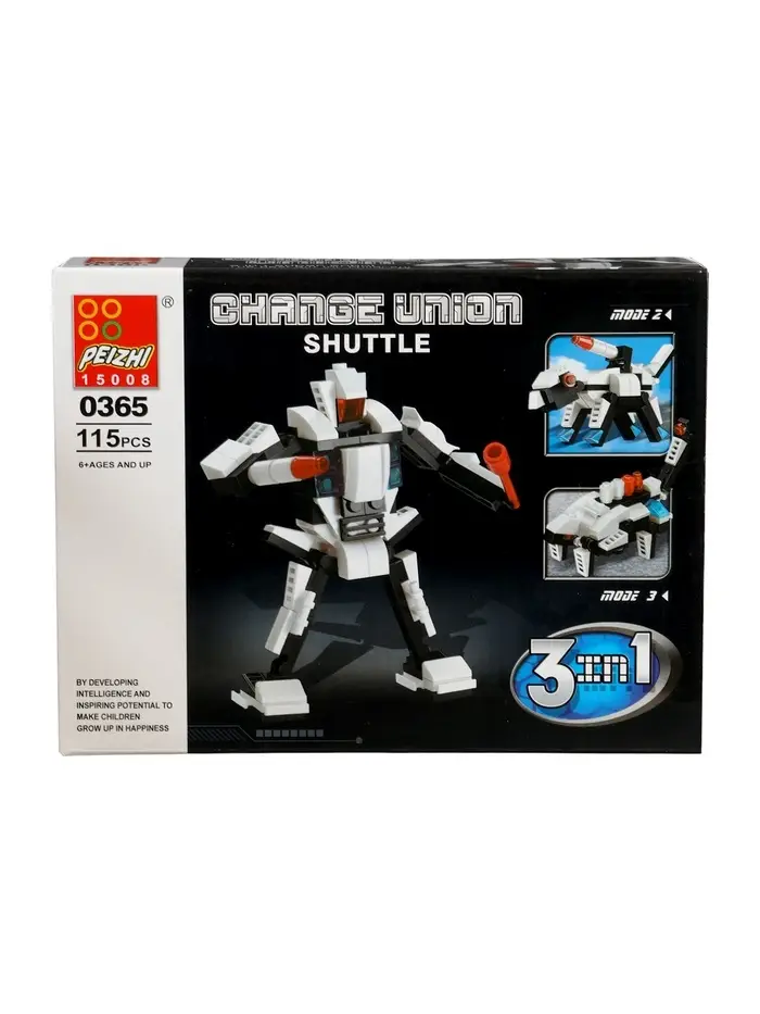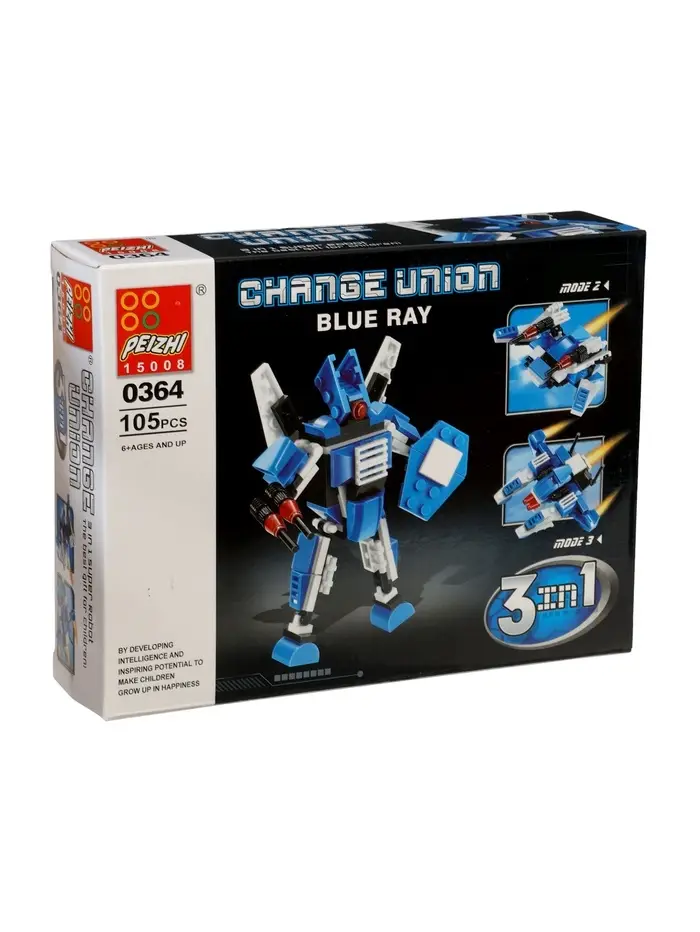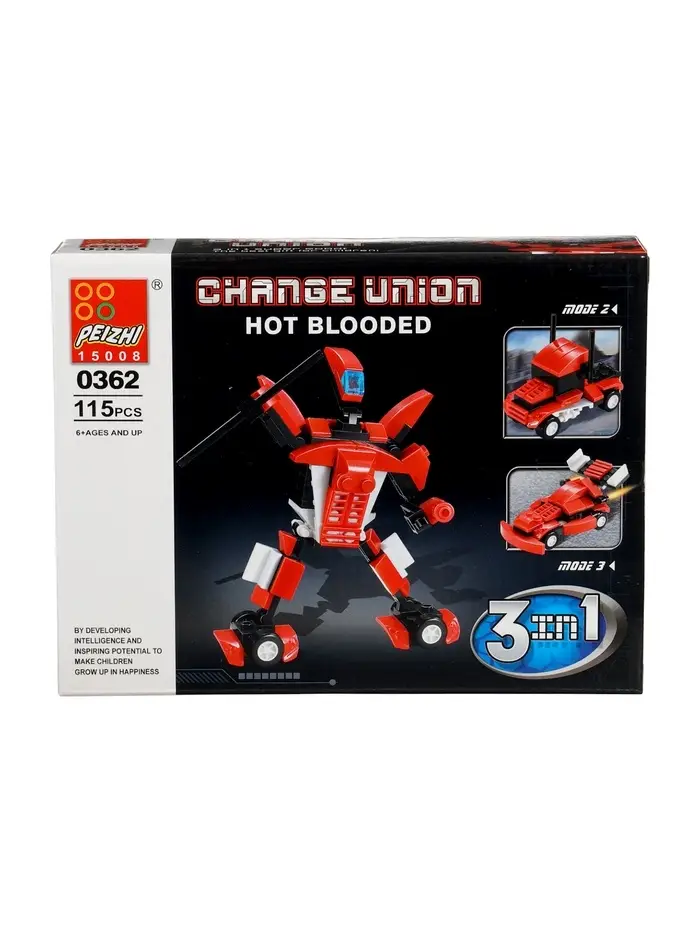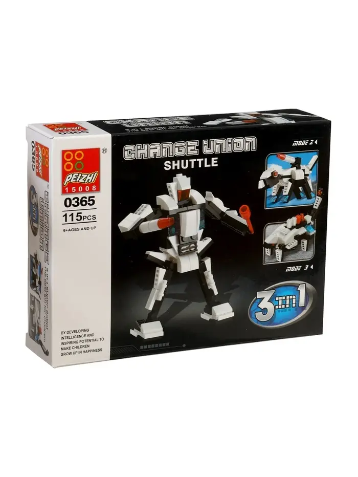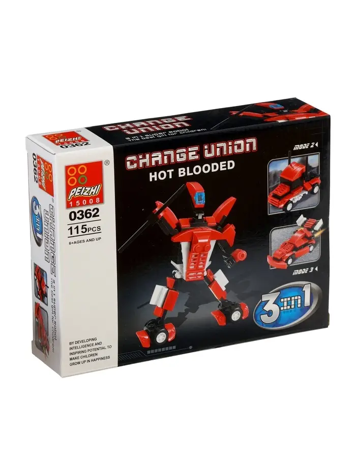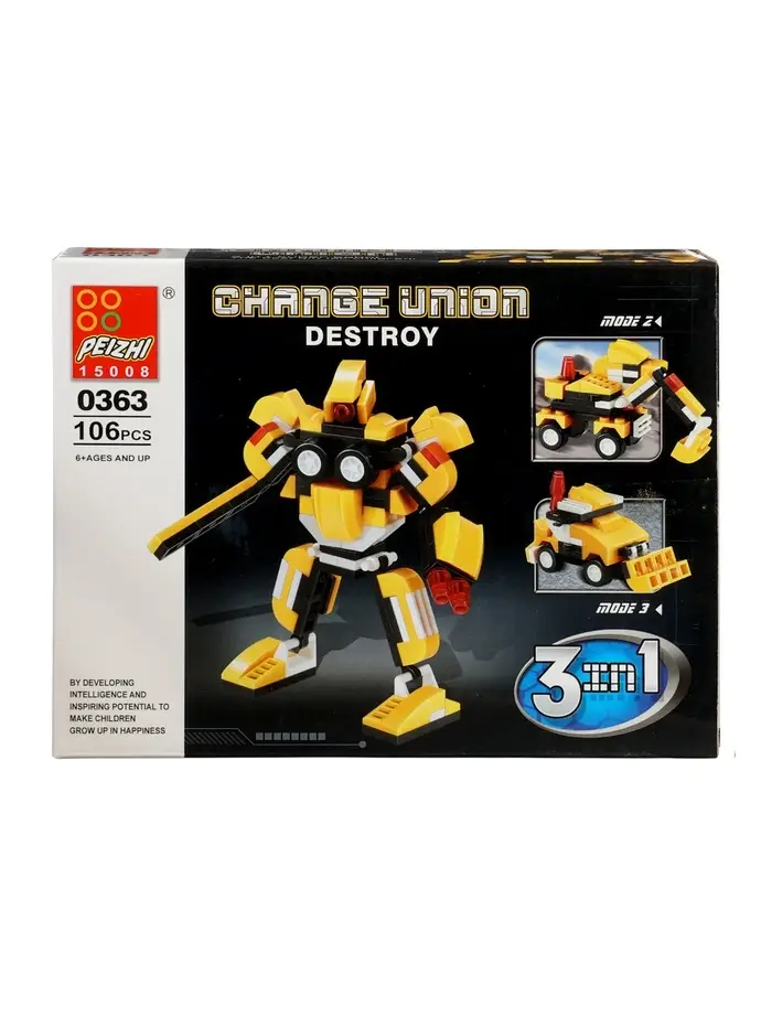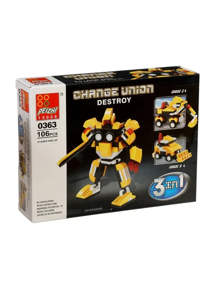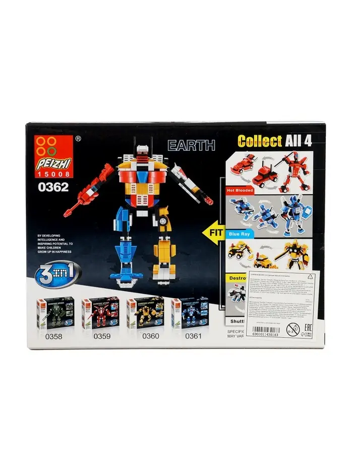 Неуязвимый воин торговой марки Peizhi способен принимать форму строительной техники. Робот меняет модификацию соответственно случаю. В обычный день машина расчищает и утилизирует космический мусор, а во время атаки межгалактических захватчиков за несколько простых движений перевоплощается в непобедимого кибервоина. Мальчишка сам выберет сценарии для игры и соберёт одну из трёх моделей робота.