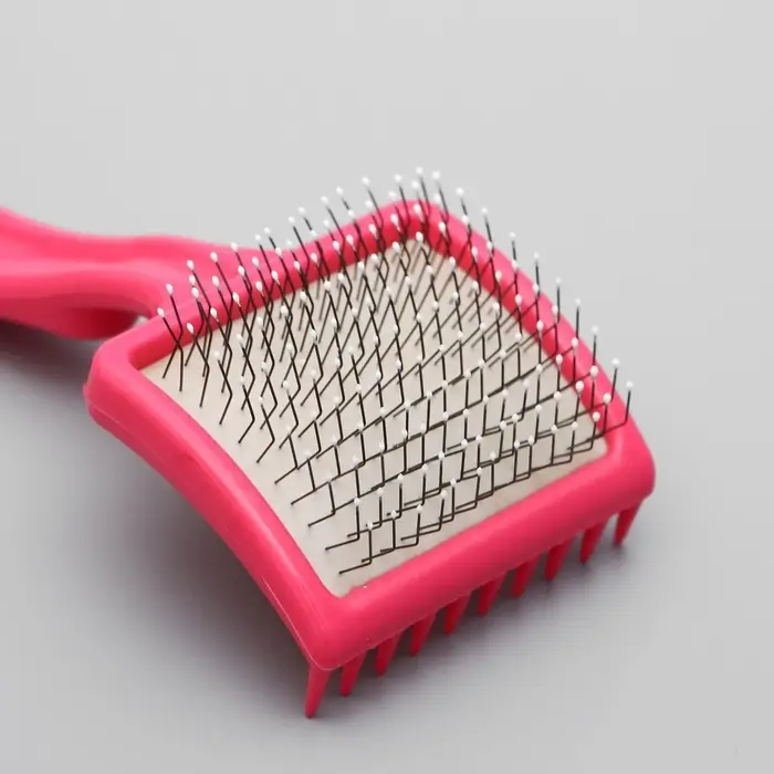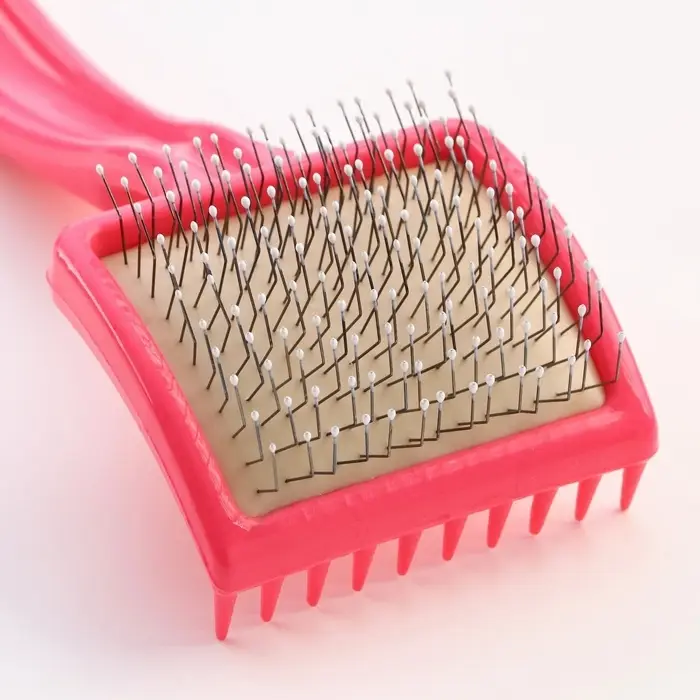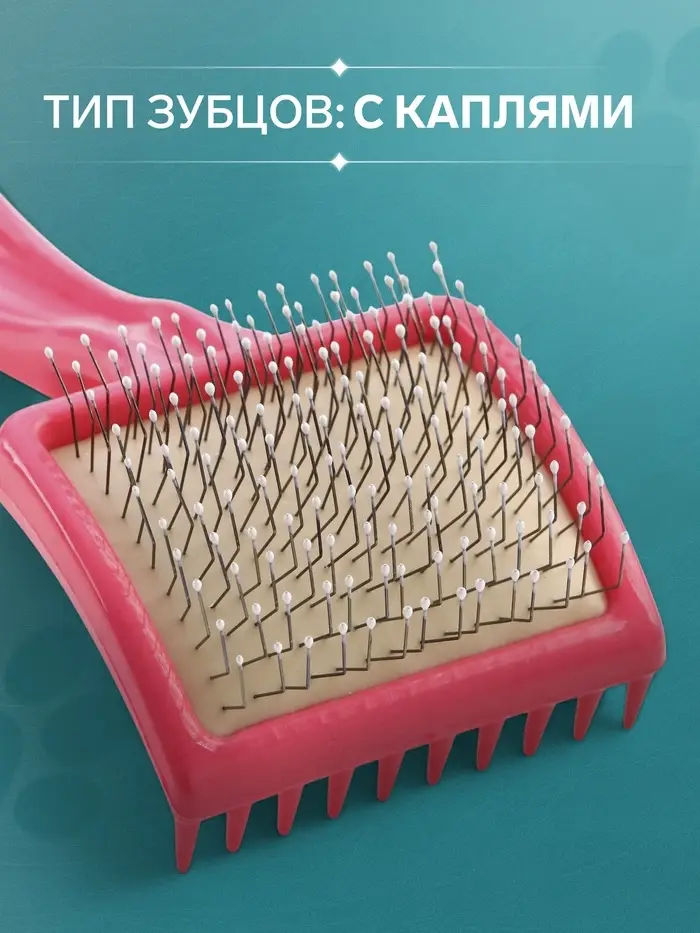 Щётка - пуходёрка средняя, основание 59×49 мм, жесткая с каплями, розовая