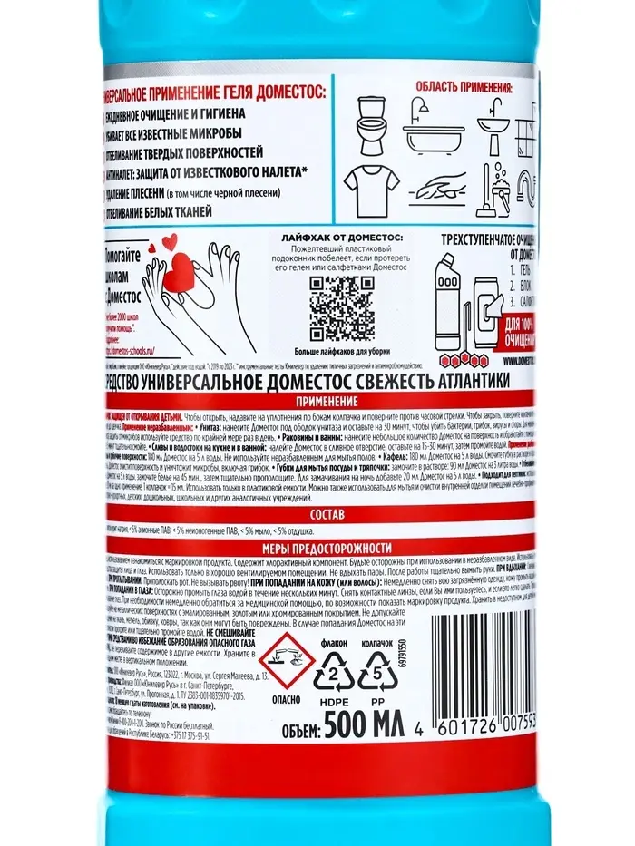 Чистящее средство Domestos Свежесть Атлантики, 500 мл