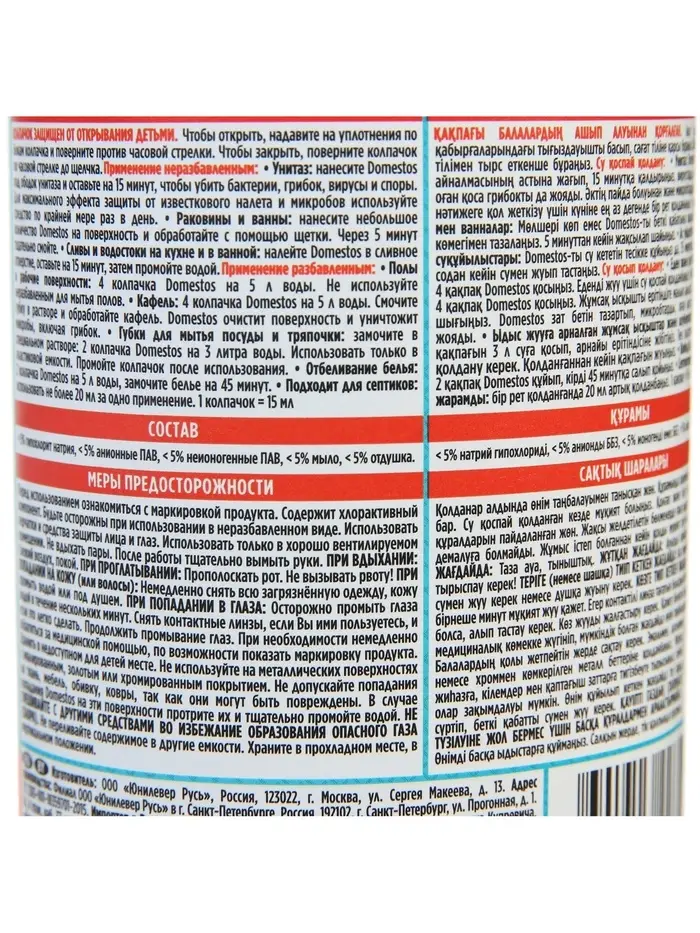 Состав: < 5% гипохлорит натрия, анионные ПАВ, неиногенные ПАВ, мыло, отдушка.ХР