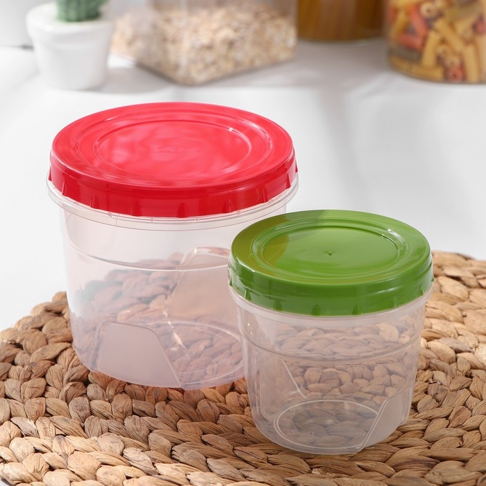 Набор контейнеров круглых с закручивающимися крышками, 2 шт: 500 мл, 1 л, прозрачные, крышки МИКС