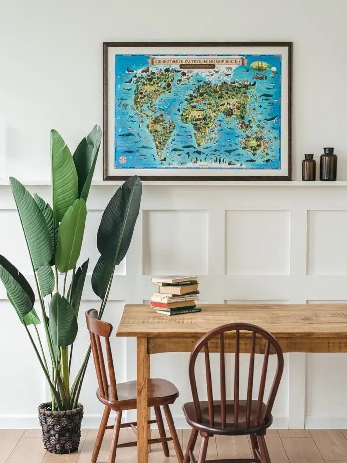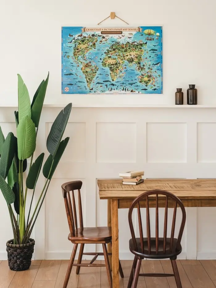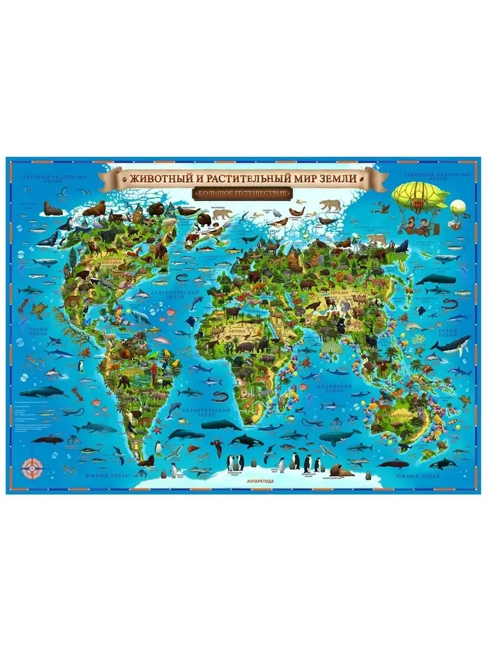 Карта «Животный и растительный мир Земли» создана специально для почемучек-дошколят. Огромные кашалоты, хищные акулы, забавные панды, величественные тигры, яркие бабочки и другие животные поселятся в детской вместе с картой.