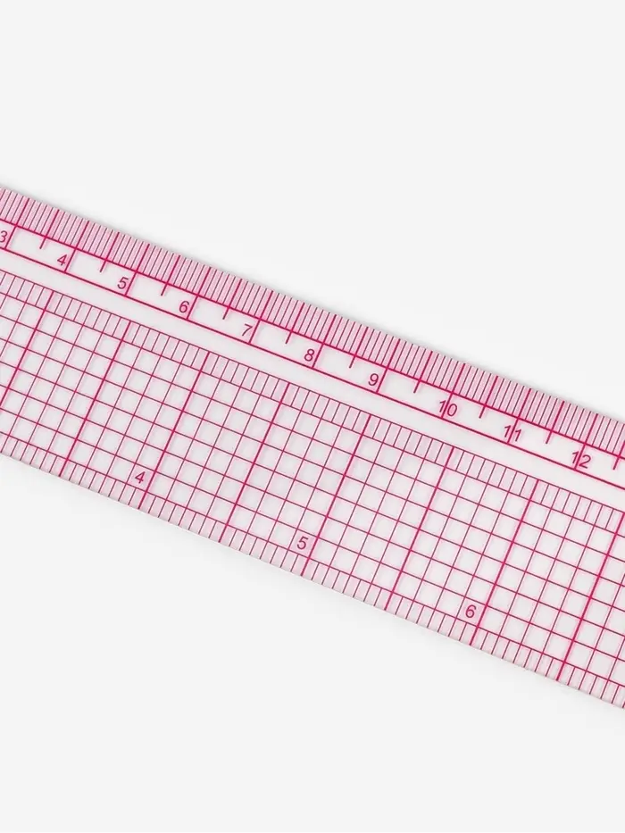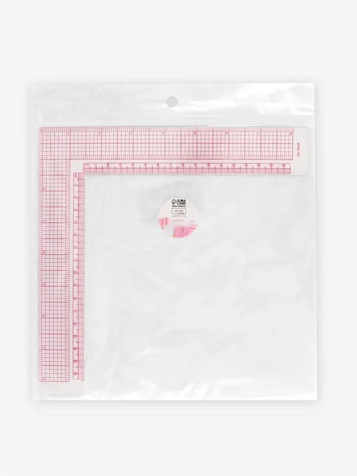 Эта квадратная разметочная линейка — ваш надёжный помощник для точной работы с тканью. Её прозрачная поверхность и чёткая сетка с сантиметровой разбивкой помогают быстро переносить выкройки, строить прямые углы и проверять параллельность срезов. Инструмент лежит ровно на материале, не скользит и сохраняет форму годами.