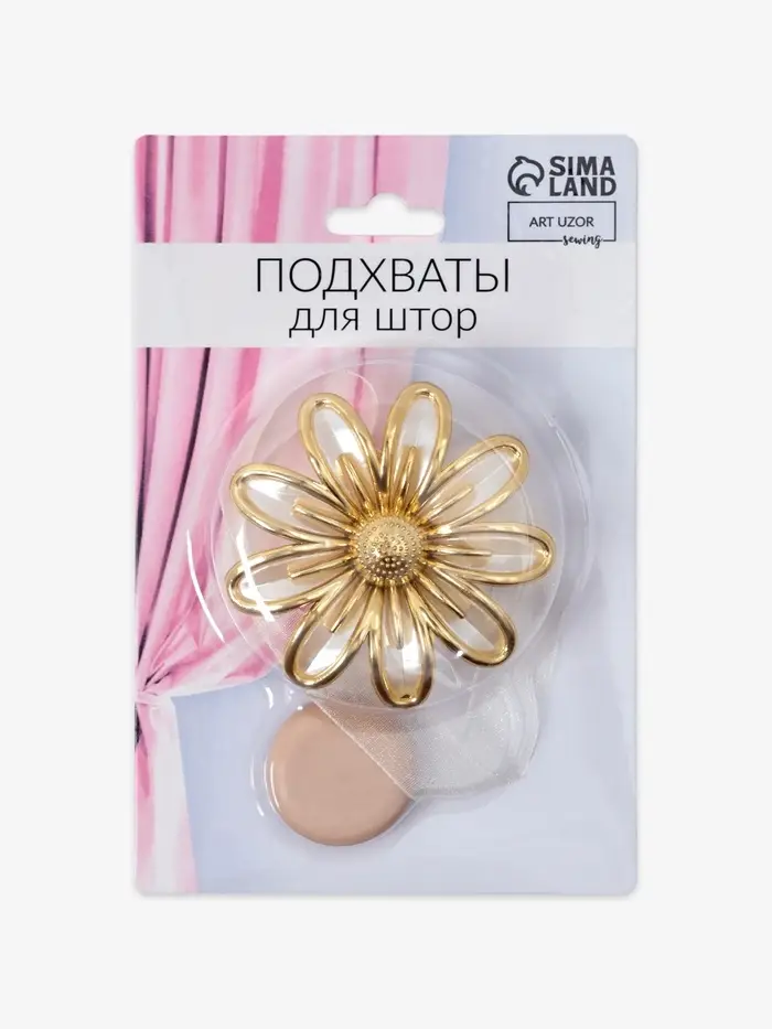 Подхват для штор «Ромашка», d=6 см, цвет бежевый, золотой