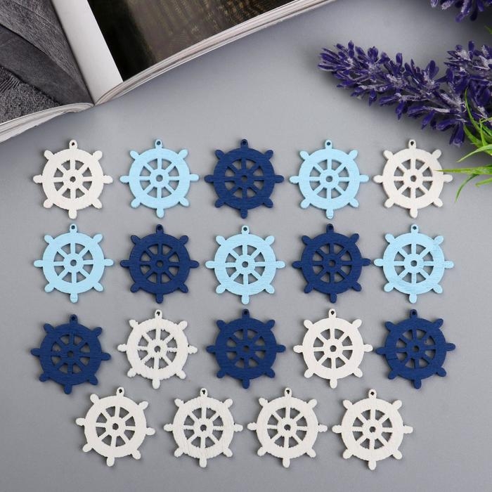 Декор для творчества дерево "Штурвал/Якорь" (набор 20 шт) МИКС 13х10 см