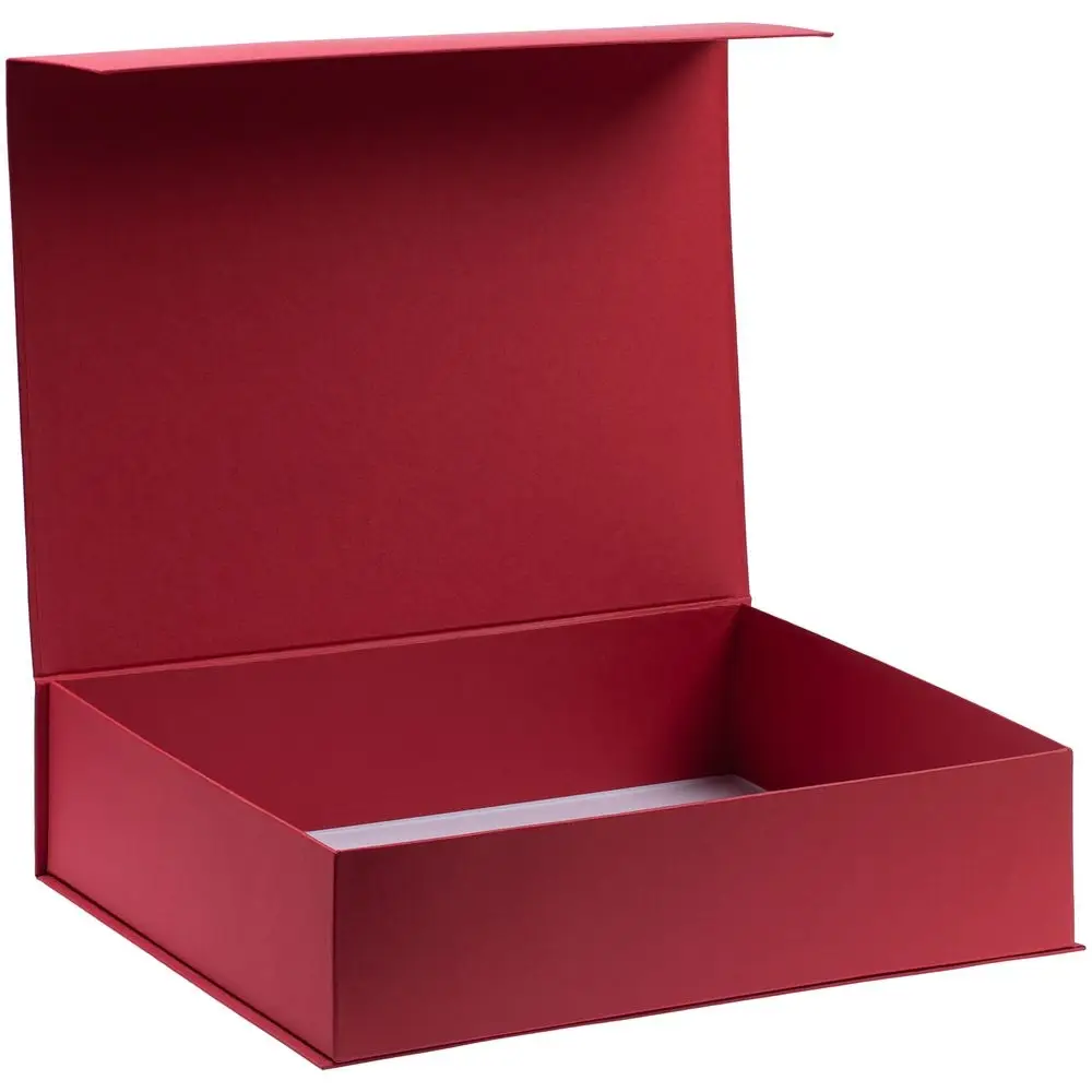 Коробка выполнена из переплетного картона, кашированного гладкой дизайнерской бумагой Magic, с крышкой на магнитах.