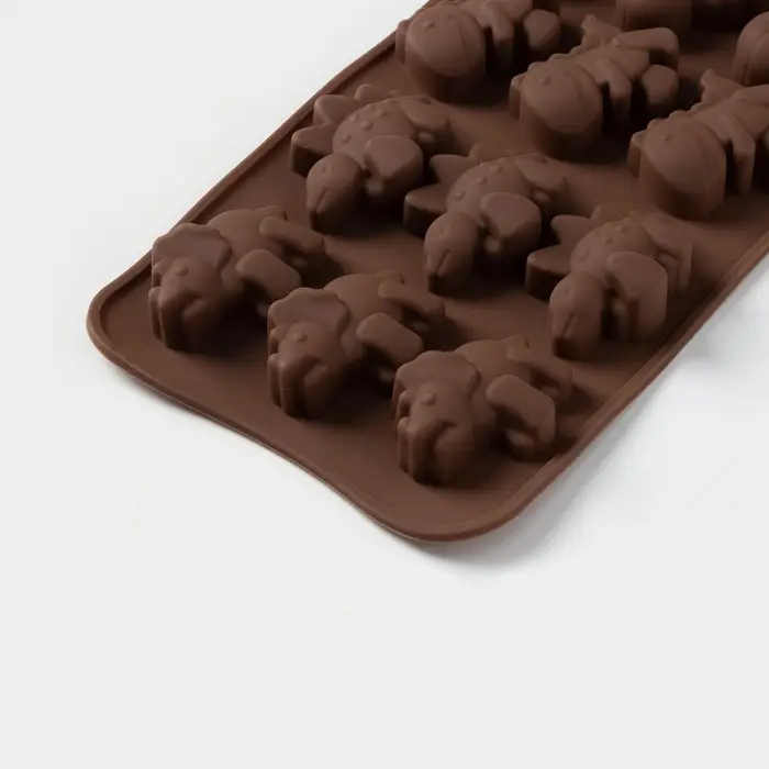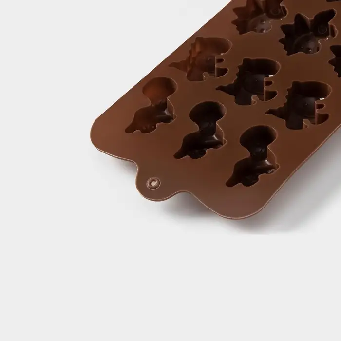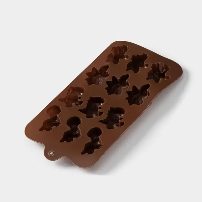 Форма для шоколада Доляна «Дино», силикон, 21×11×2 см, 12 ячеек (4×2.5×2 см), коричневая