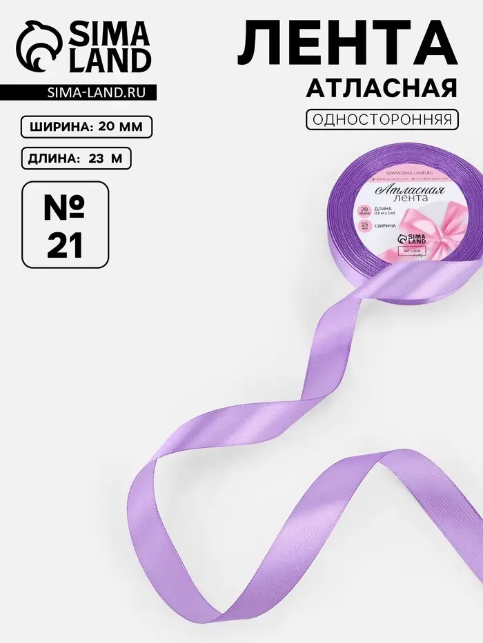 Лента атласная, 20 мм, 23±1 м, сиреневая №21
