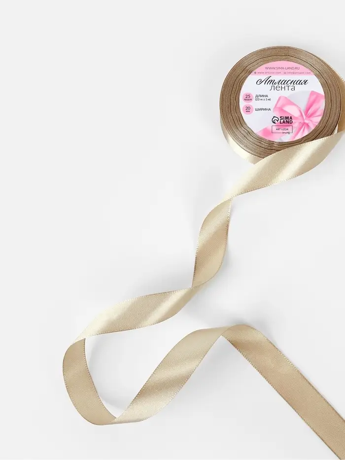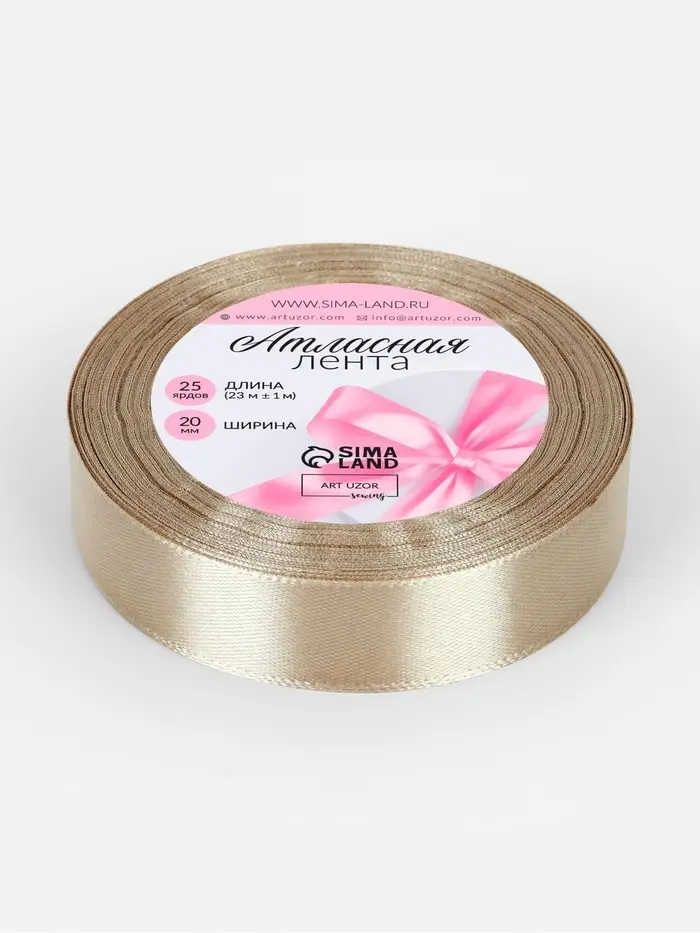 Лента атласная, 20 мм, 23±1 м, тёмно-бежевая №268
