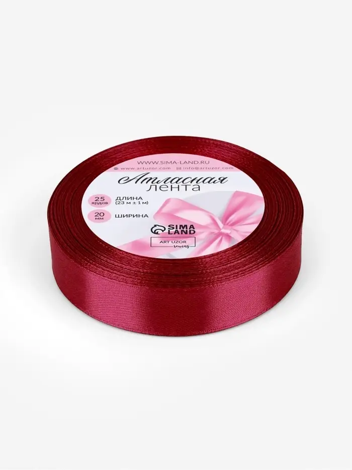 Лента атласная, 20 мм, 23±1 м, бордовая №37