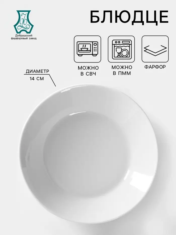 Блюдце Добрушский завод «Бельё», d=14 см, фарфор, белое