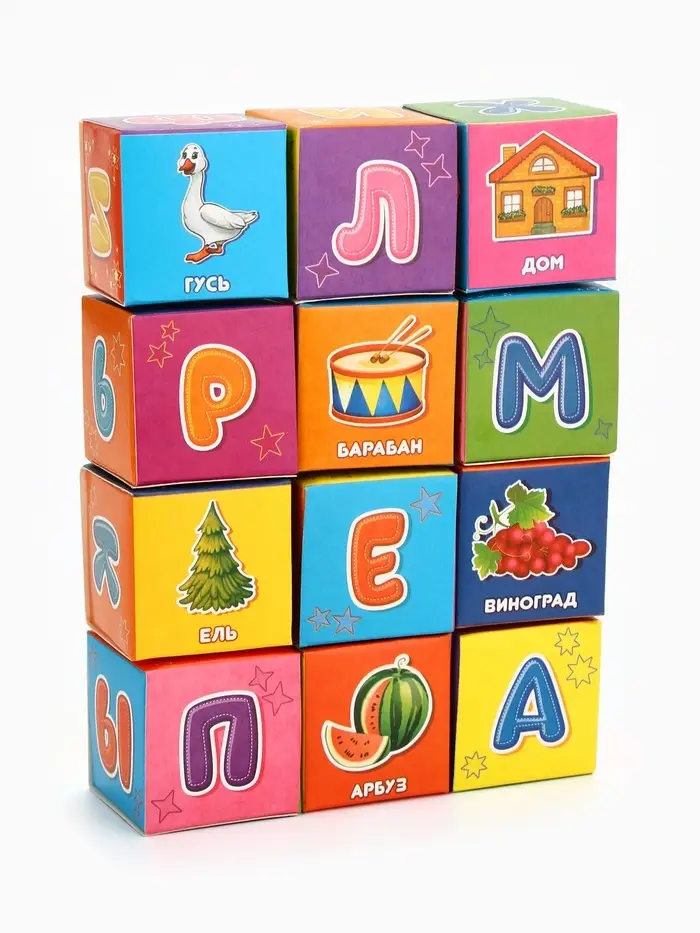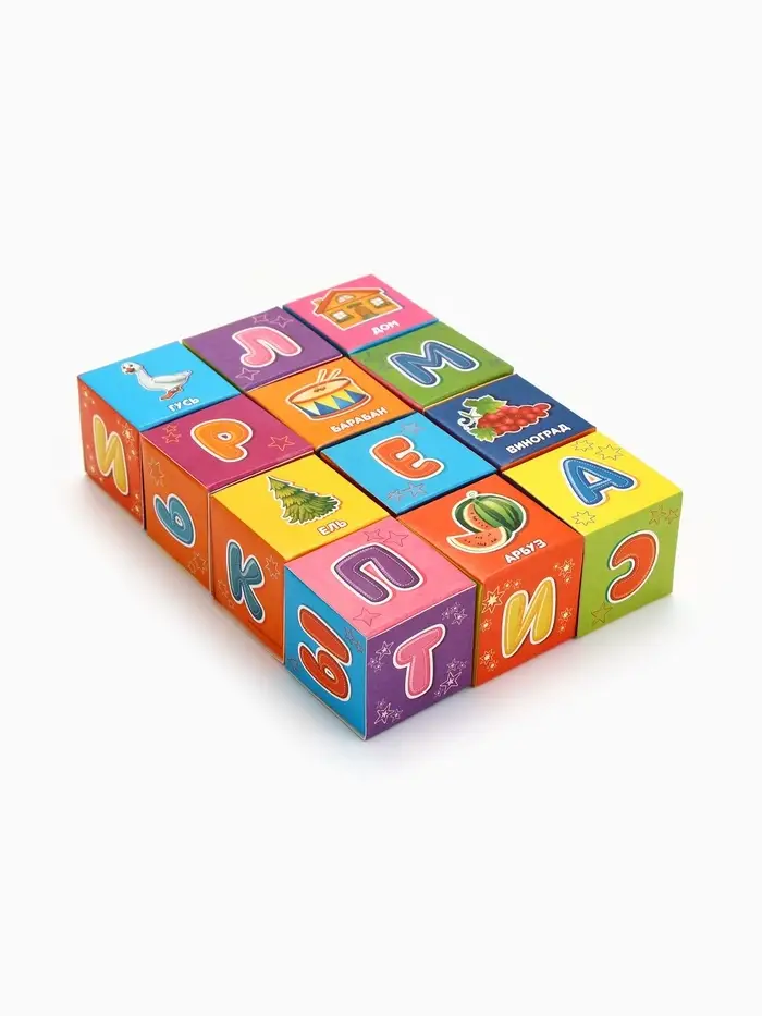 Кубики «Азбука», по методике Монтессори, 12 шт., 3+
