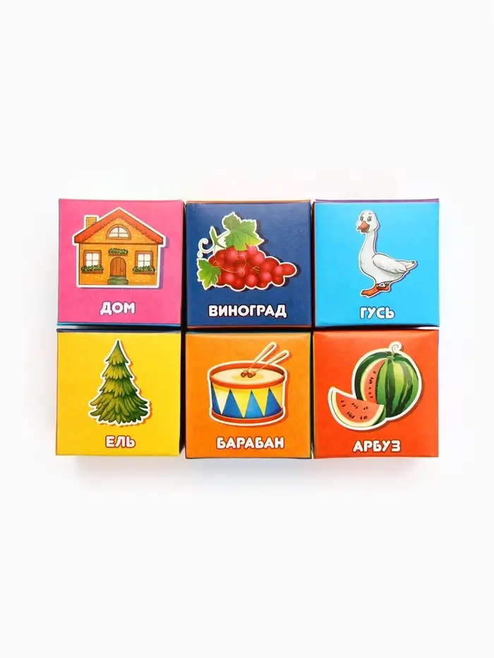 Благодаря красочным изображениям на деталях малыш будет усваивать информацию куда быстрее! Картинки с буквами задействуют ассоциативную память у ребёнка, чтобы он лучше запоминал алфавит. Также из кубиков можно конструировать различные фигуры и учить кроху счёту. В комплект входит 12 предметов.