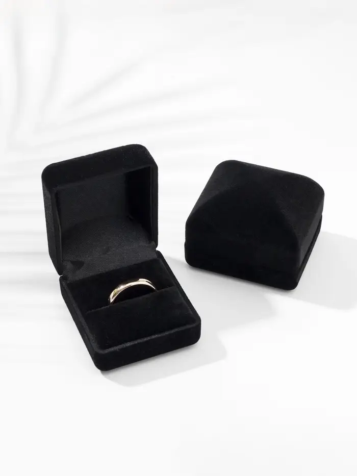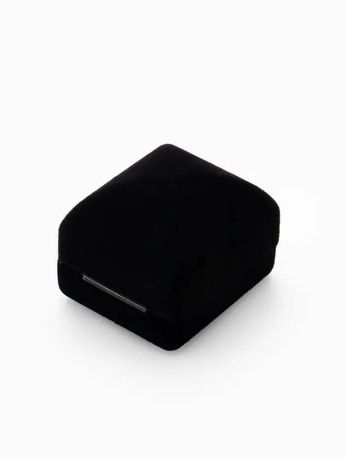 - Универсальное назначение: Внутренняя вставка оснащена специальными креплениями, подходящими для размещения кольца или пары серег. Однотонный черный фон вставки создает необходимый контраст, акцентируя внимание на деталях украшения.