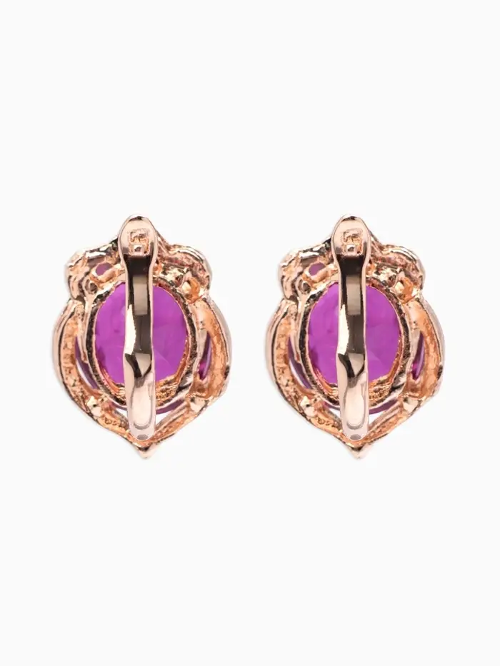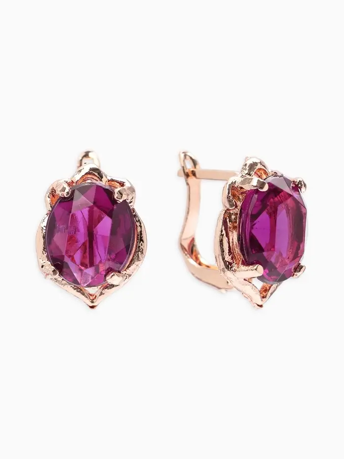 Серьги со стразами «Эдель», овальчик, фиолетовые в золоте