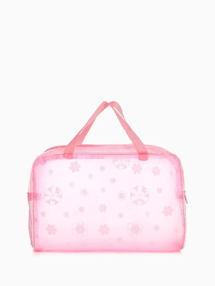 Косметичка - сумочка на молнии для бассейна, с ручками, с рисунком, розовая