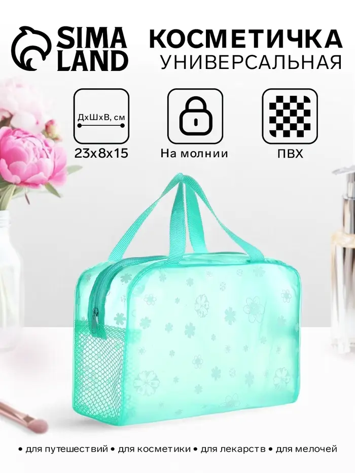 Косметичка - сумочка на молнии для бассейна, с ручками, с рисунком, зелёная