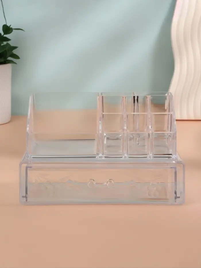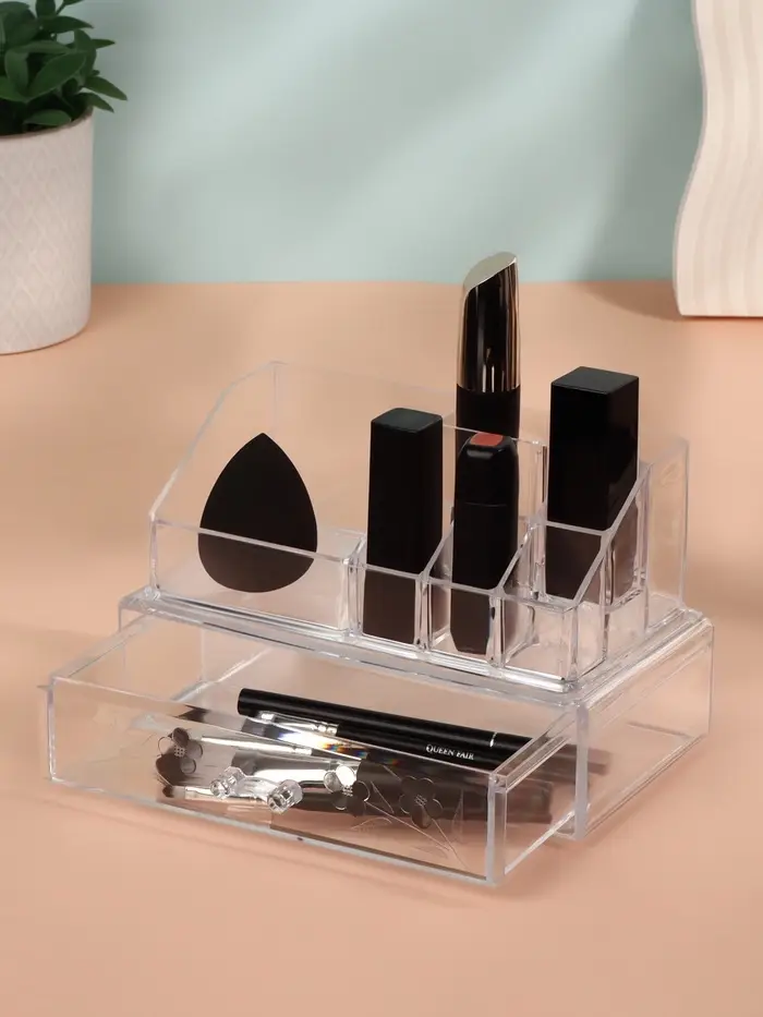 Органайзер от QF — это незаменимый аксессуар для поддержания порядка в вашем доме и на рабочем столе. Благодаря 9 секциям и выдвижному ящику, вы легко сможете организовать хранение косметики, аксессуаров и других мелочей. Его многоуровневая конструкция позволяет эффективно использовать пространство, а прозрачный пластик обеспечивает быстрый доступ к необходимым вещам.