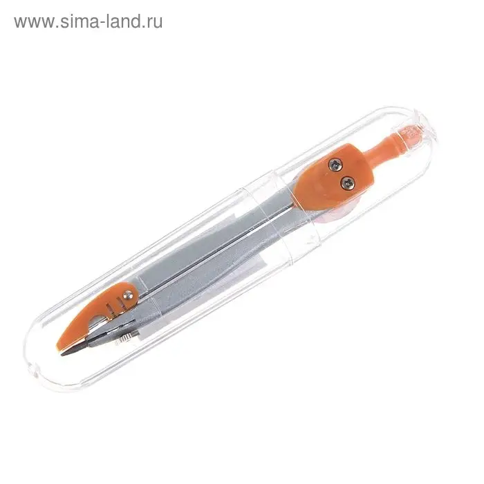 - Пластиковая туба надёжно защищает циркуль от поломки и удобна для переноски.