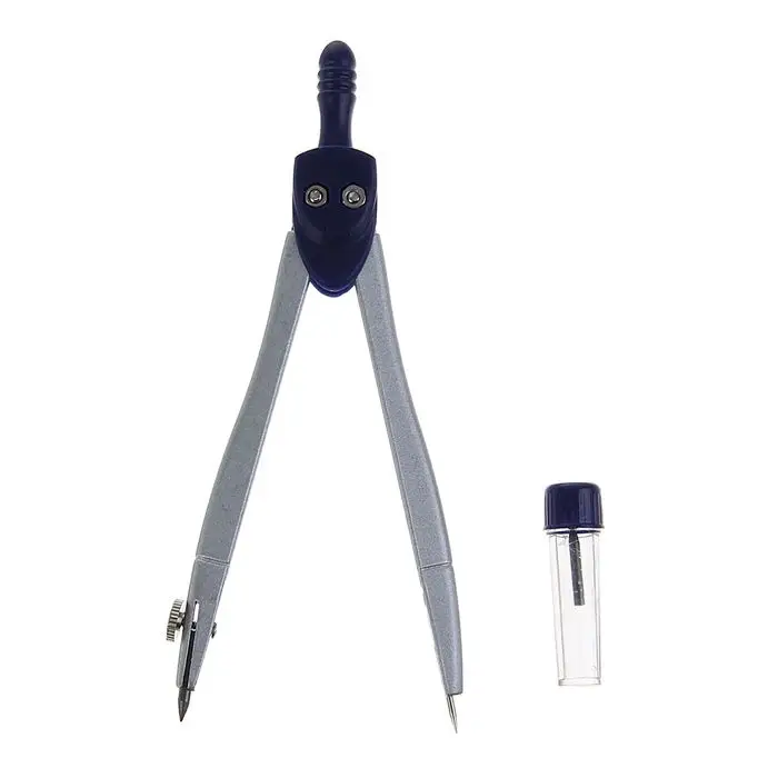 Этот металлический циркуль увеличенного диаметра готов к длительной работе. В комплекте есть запасные грифели, что избавляет от необходимости срочно искать расходные материалы в самый неподходящий момент.