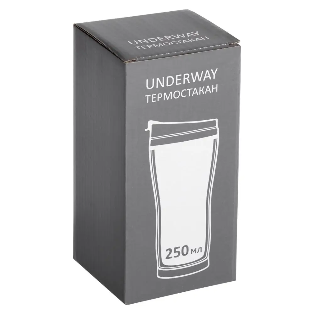 Двухслойная конструкция из пластика снаружи и пищевой нержавеющей стали внутри. Герметичная завинчивающаяся крышка с откидным клапаном для питья. В отверстие в крышке можно вставить шнурок для удобного ношения стакана на руке. Шнурок в комплект не входит.