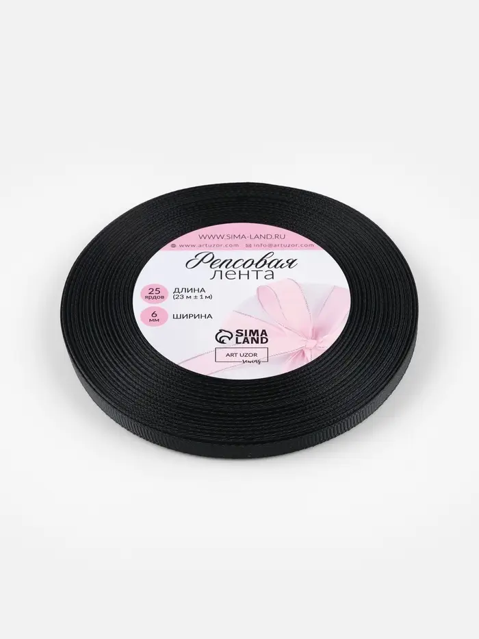 Лента репсовая, 6 мм, 23±1 м, чёрная №39