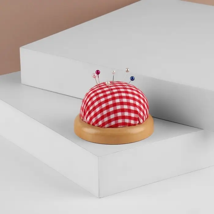 Игольница «Круг», на деревянной подложке, d=7 см, красная, белая