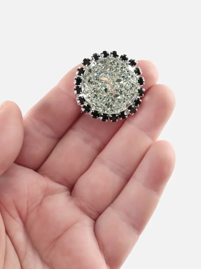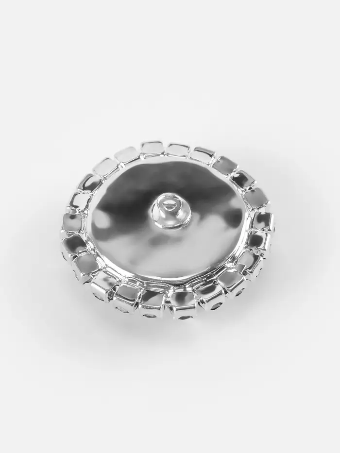 Серебристо-чёрные декоративные пуговицы на ножке добавят стильный акцент верхней одежде, сумкам или аксессуарам. Металлическая основа и пластиковое покрытие сочетают прочность и лёгкость. Диаметр 30 мм удобен для плотных тканей — курток, пальто, шерстяных жакетов.