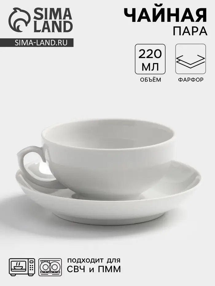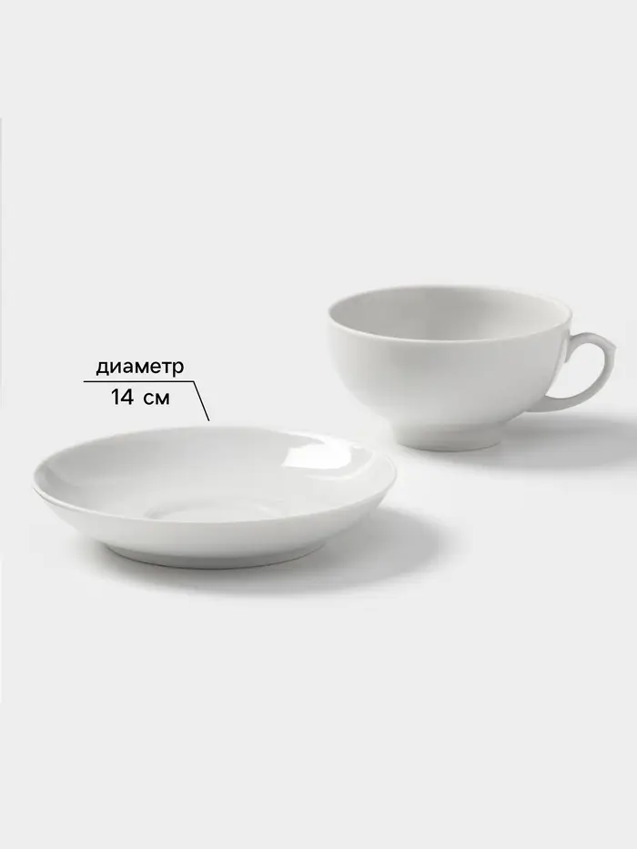 Чайная пара Дулевский фарфор «Рубин», 220 мл, чашка d=10.2 см, блюдце d=14 см, белая