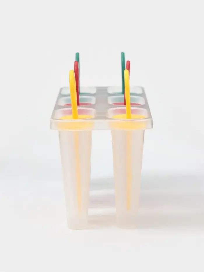 Форма «Симпл» превращает заморозку десерта в спокойный вечерний ритуал. Шесть геометрических силуэтов — круг, квадрат, треугольник — ждут молочной или фруктовой заливки. Прозрачный корпус показывает, как смесь постепенно застывает, а палочки уже лежат рядом: не нужно рыться в ящиках в поисках подходящей длины.