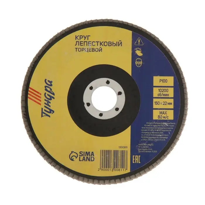 Круг лепестковый торцевой ТУНДРА, 150×22 мм, Р100