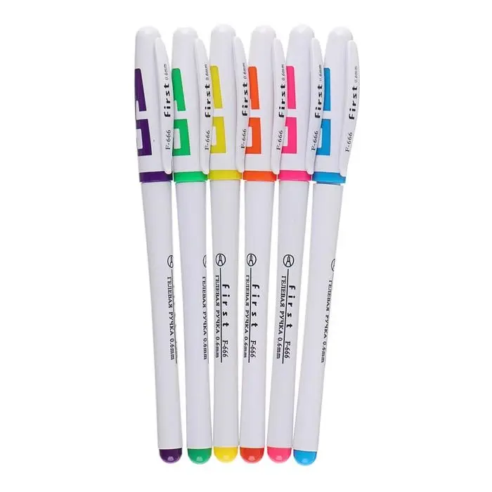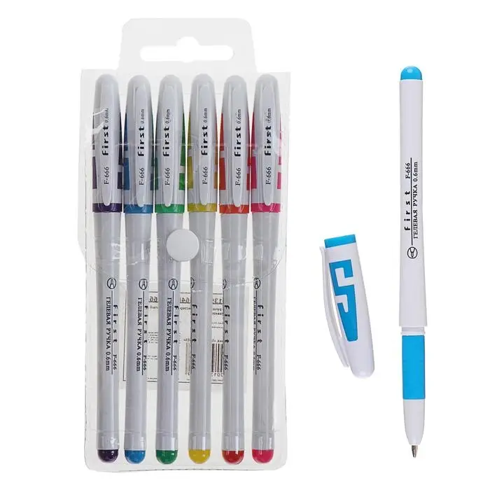 - Шесть неавтоматических гелевых ручек с классическим колпачком.