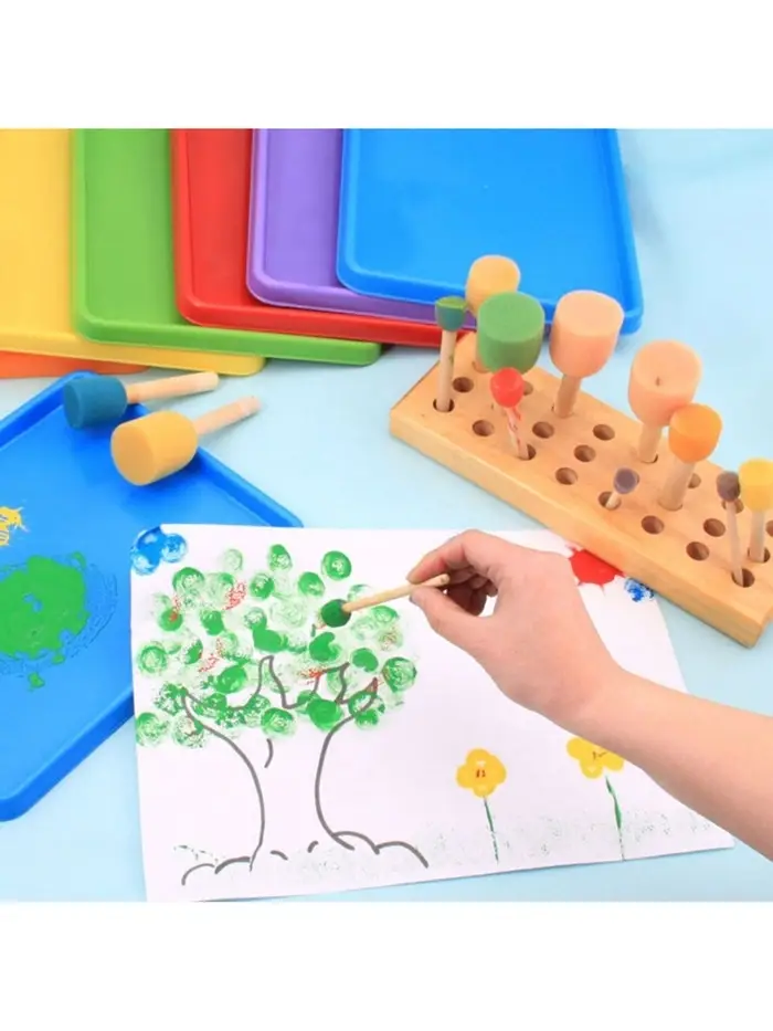 Поролоновые кисти-спонжи подойдут для нанесения краски на большие поверхности рисунка и создания интересных текстур. У кисти есть ручка, поэтому работать вы сможете аккуратно, не пачкая руки.