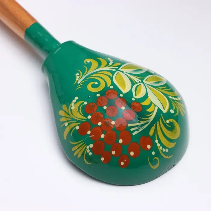 - Ручная роспись: узоры выполнены вручную, что делает каждую ложку уникальной и ценной как сувенир.