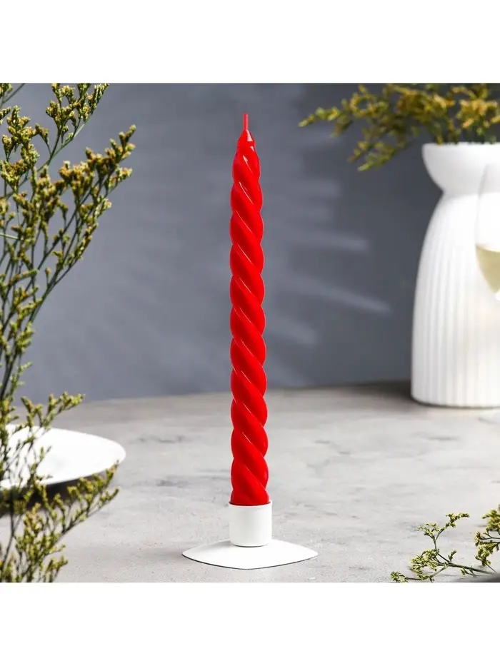 Свеча витая, 2.3×24.5 см, 5 ч, 50 г, красная