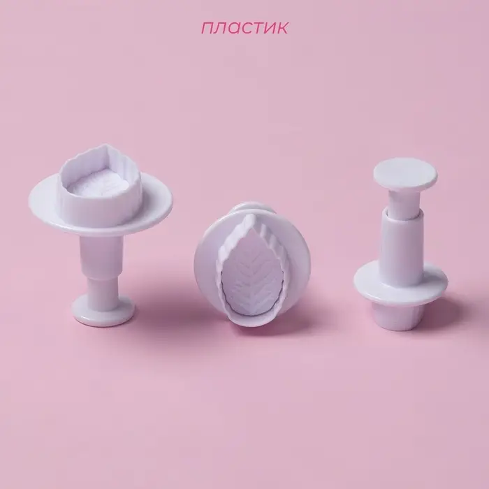 Плунжеры кондитерские Доляна «Листья», набор 3 шт., пластик, белые