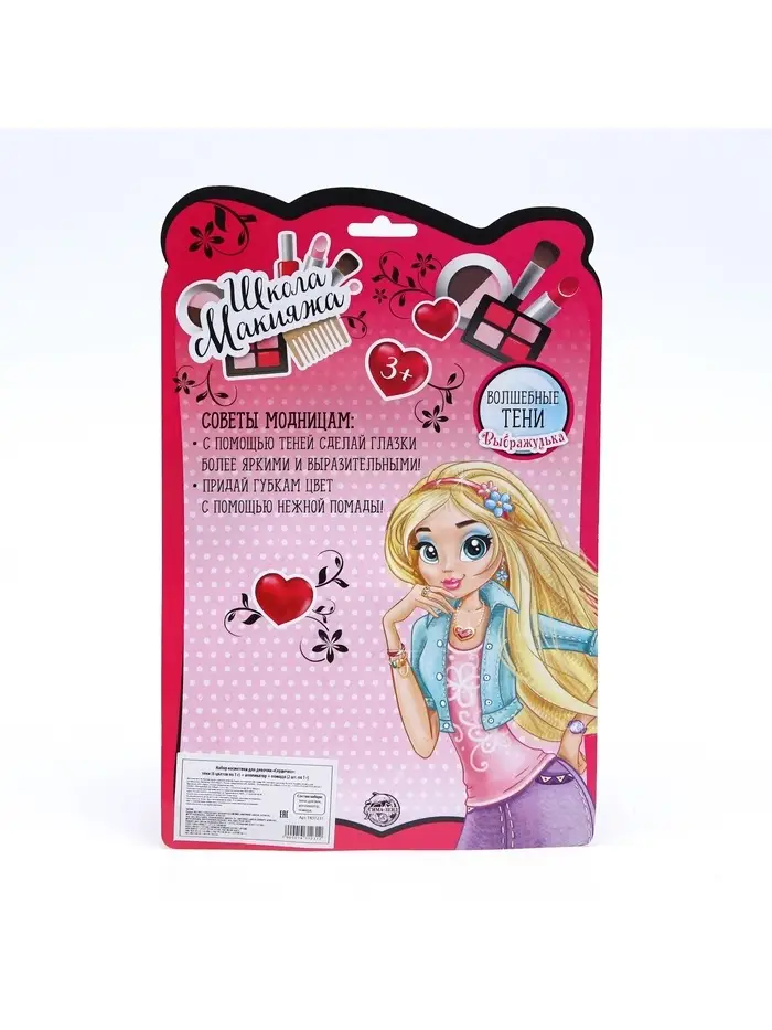 Все компоненты набора детской косметики содержат минимум пигмента, берегут детскую кожу и легко смываются теплой водой.