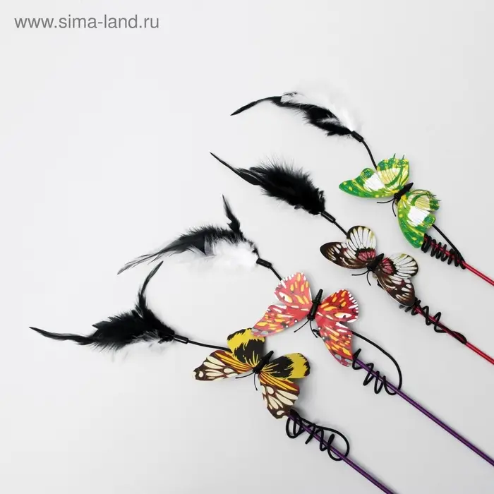 Дразнилка «Бабочка», с перьями, цвет МИКС