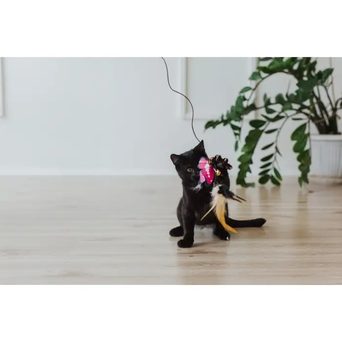 Дразнилка - это всегда актуальный аксессуар для усатых-полосатых, а дизайн изделия никого не оставят равнодушным! Такая удочка и развлекает питомца, и дрессирует одновременно, помогая кошке также держать мыщцы в тонусе, развивать сообразительность и реакцию. Игры с удочкой-дразнилкой способствуют поддержанию кошки в хорошей физической форме. Изделие изготовлено из прочного пластика и прослужит долго.