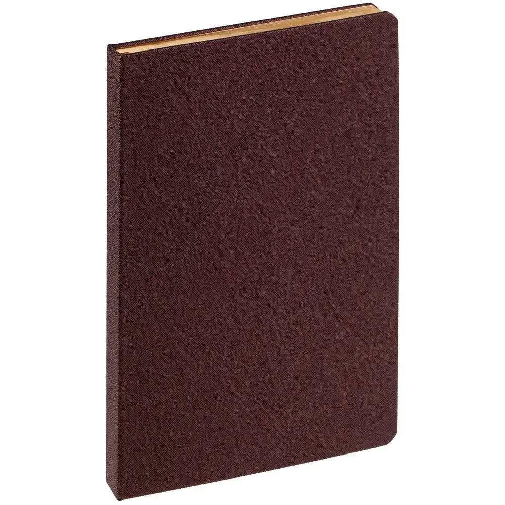 Ежедневник с твердой обложкой и золотистым обрезом, выполнен из материала Saffian, коричневый, дополнен ляссе в цвет обложки.
