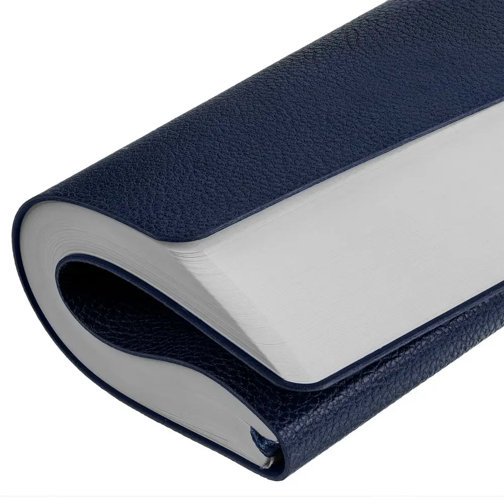 Ежедневник с гибкой обложкой, выполнен из материал La Fite, темно-синий ХХ, дополнен ляссе в цвет обложки с металлическим шильдом.