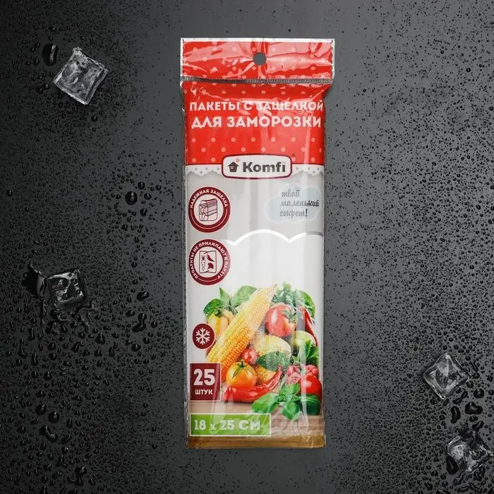 Пакеты для заморозки с защёлкой зип-лок Komfi, 18×25 см, 25 шт., 35 мкм, полипропилен