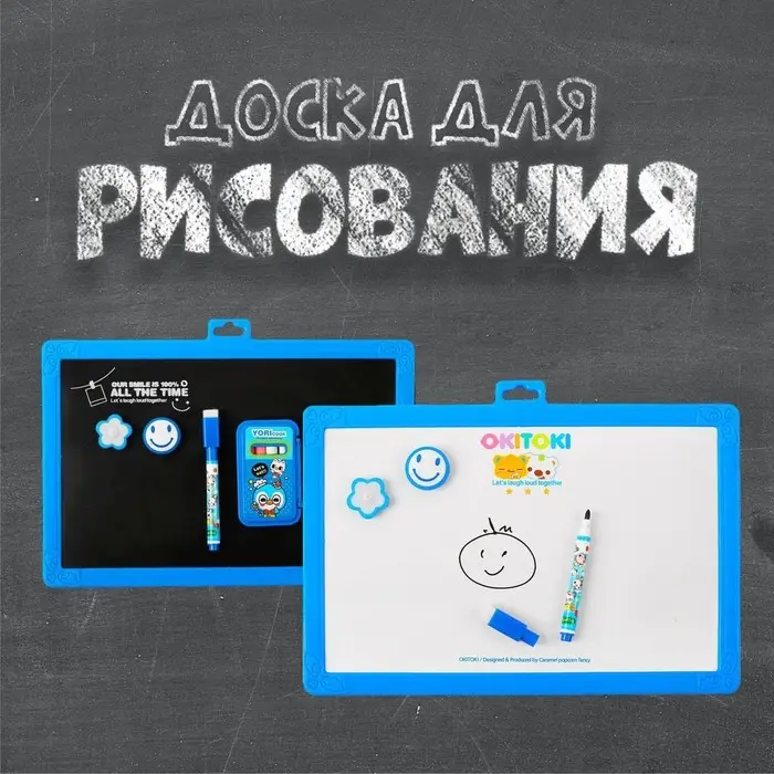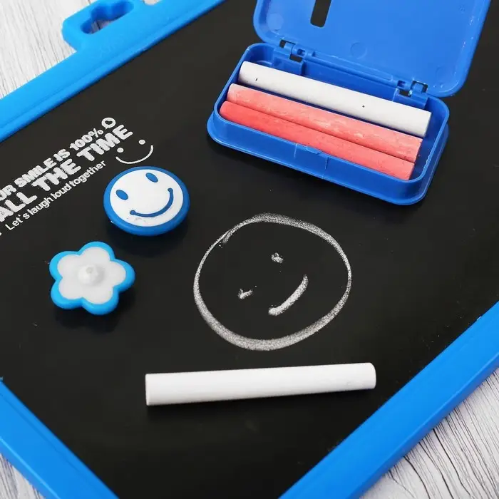 Двусторонняя магнитная доска под маркер и мел — это возможность занять малыша и проявить его художественные навыки без использования бумаги. Ещё она подходит для обучающих занятий, например, чтобы записывать слова или математические примеры. Такая игрушка удобна и практична, ведь изображения и символы легко стереть, а затем воссоздать на чистом холсте.