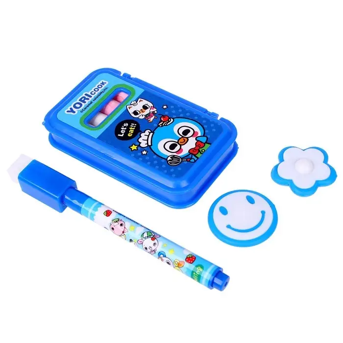 Доска магнитная двухсторонняя со зверьками, под маркер и мел, мел 4 шт. в машинке, маркер, магниты 2 шт.